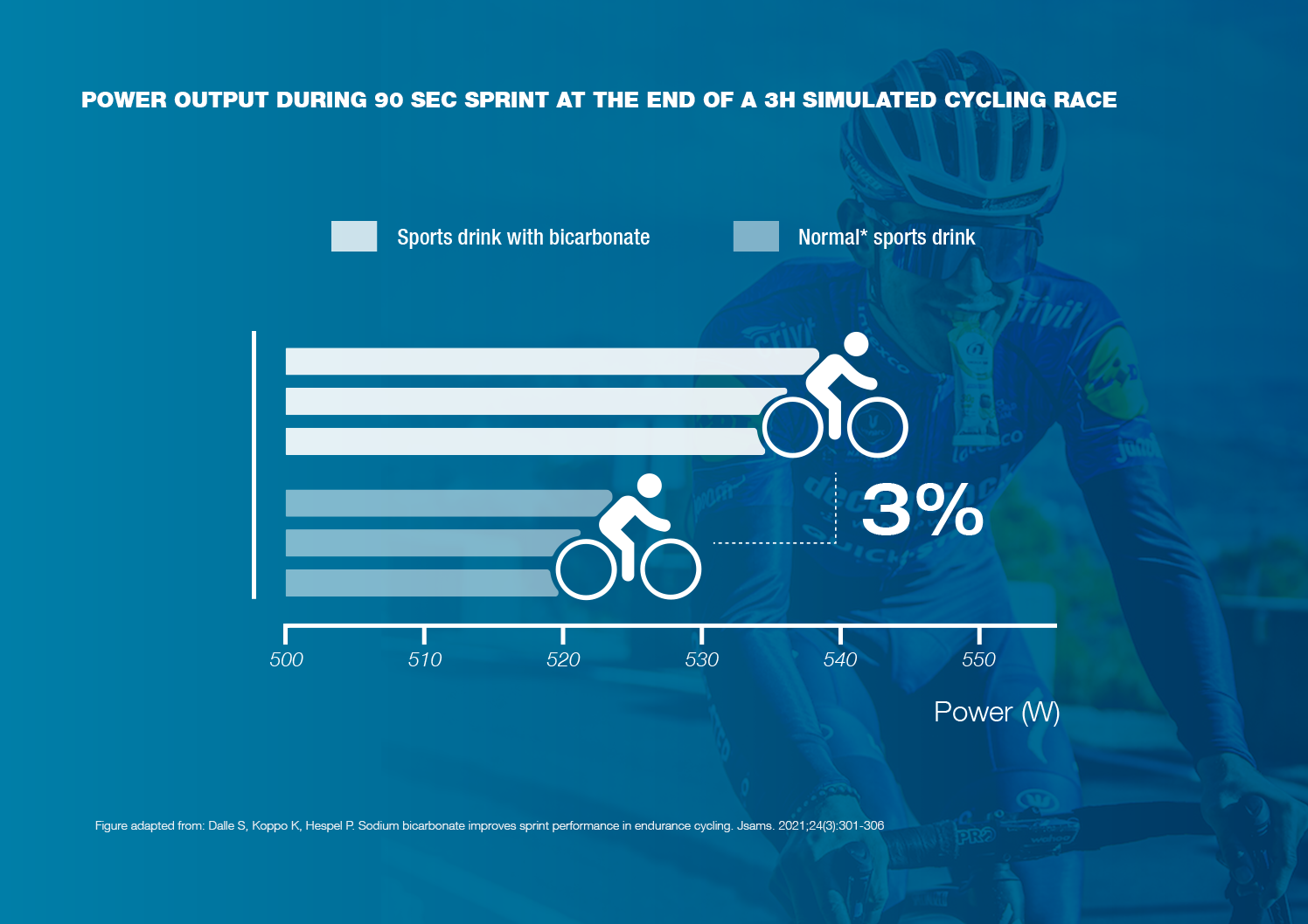 * when an total intake of 0,22g bicarbonate is obtained before the final sprint, when taken together with other 6d products that allow for an intake of 60g carbohydrates per hour during the race.