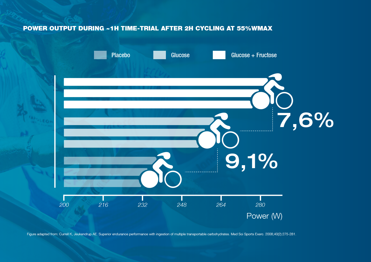 * together with other 6d products with a 2:1 carb mix when an hourly intake of 90g carbohydrates is obtained, compared to glucose-only based sports products.